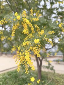 この前 散歩をしていたら ミモザの木を見つけました。